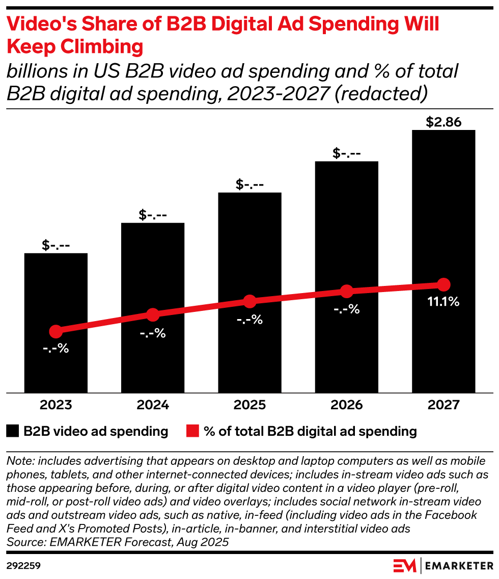 Key Stat: B2B video ad spending will grow steadily to reach $2.86 billion in 2027, accounting for 11.1% of total B2B digital ad spend.