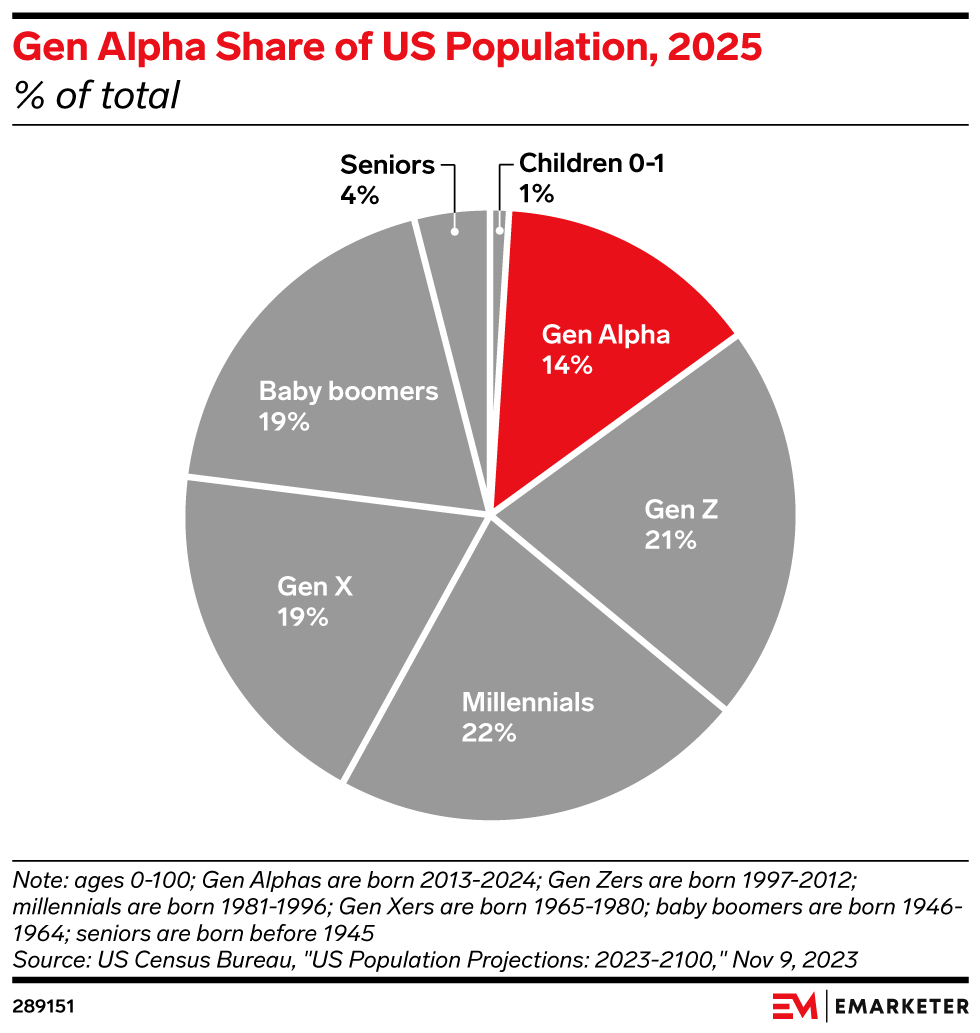 Just under 40% of US households have children under age 18 in 2025, per the US Census Bureau. Of those, nearly one-third have a child under 12. Gen Alpha comprises 14% of the population. Their parents are primarily millennials and Gen Zers.
