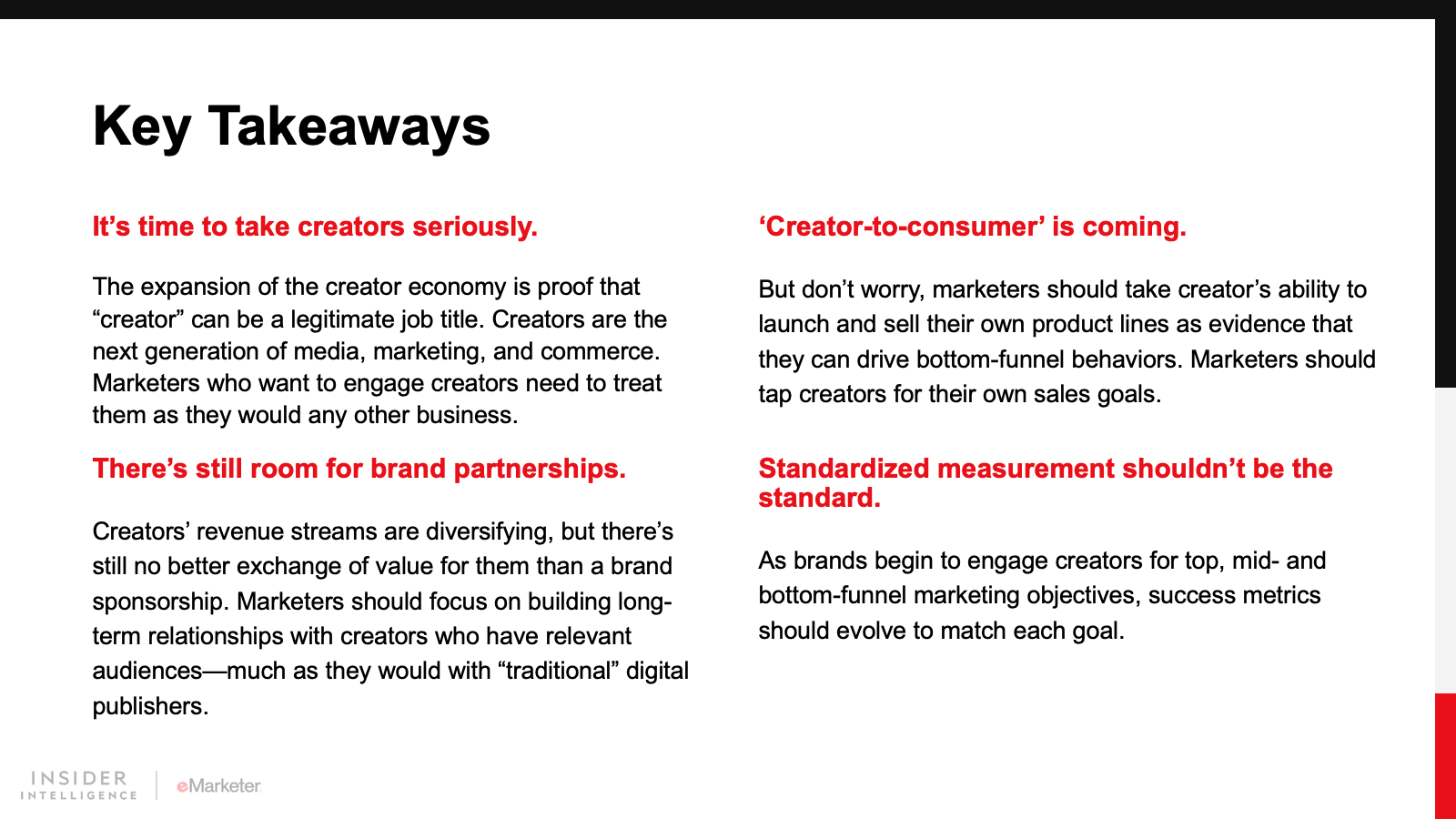 Creators are becoming brands in their own right, and marketers should treat them as such. Think of creators as publishers: Focus on finding relevant audiences and building relationships.