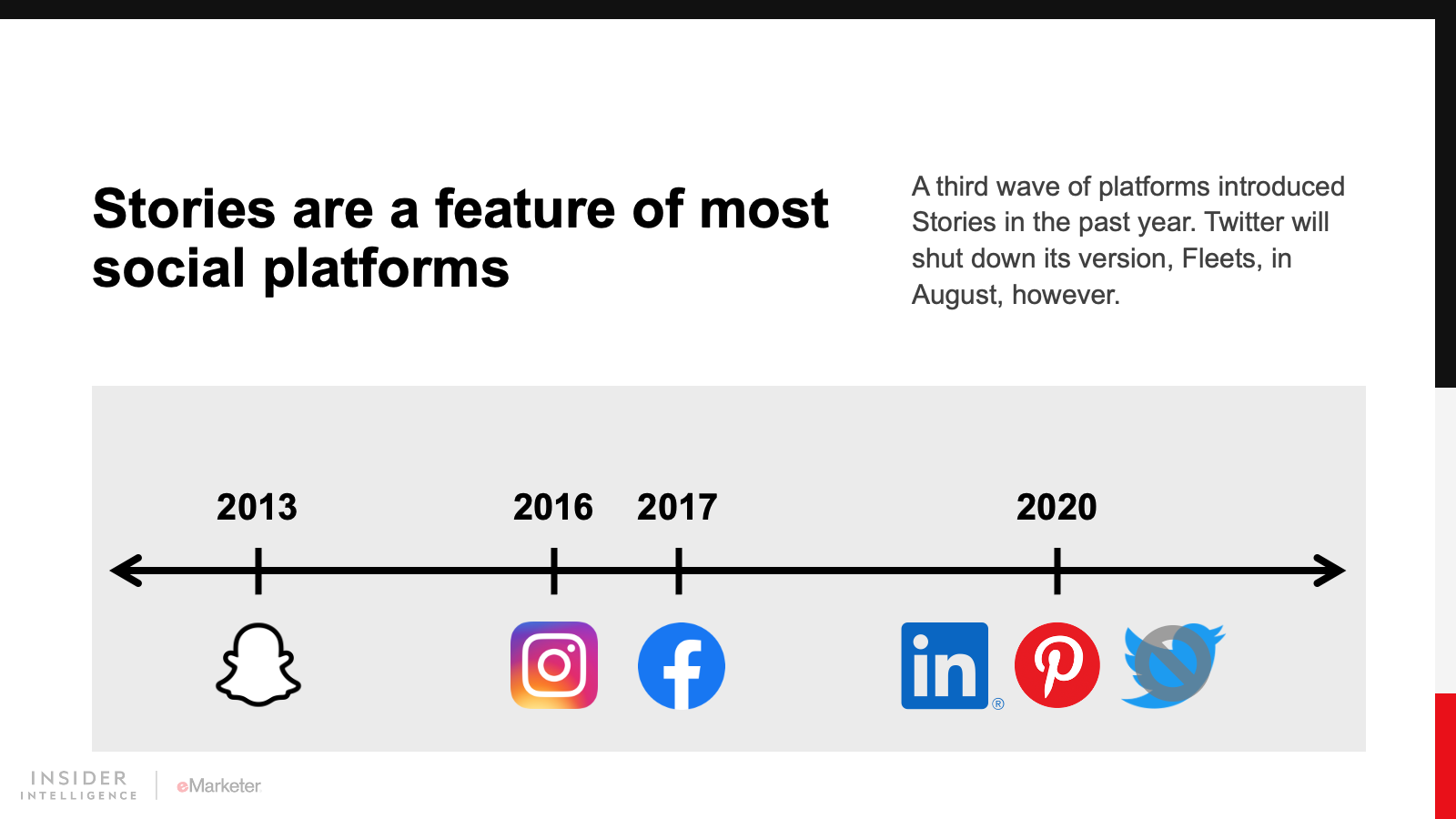 We expect Instagram and its siblings will bring more social commerce features to Stories. We also foresee more video and interactivity. The rise of short-form video is something to keep an eye on, but we believe the uniqueness of the Story format will help it solidify its place as an important venue for social media marketing.