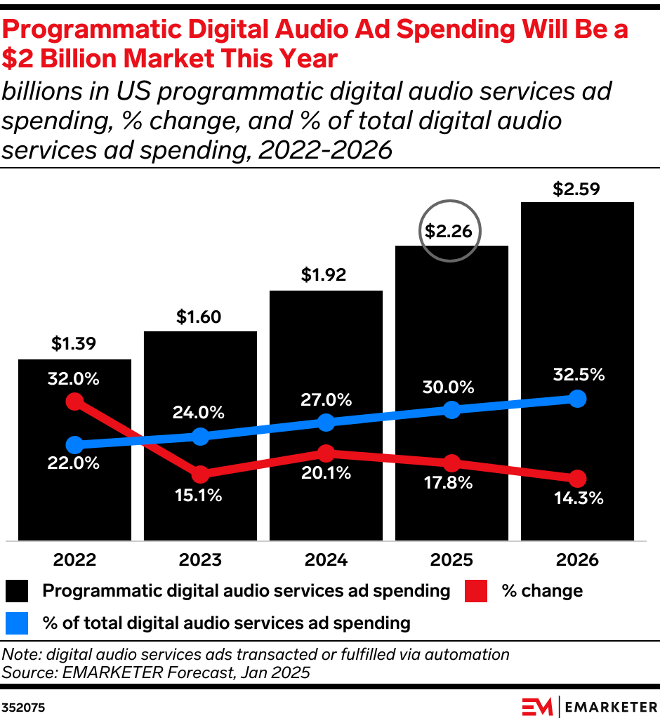 Key Stat: Programmatic will account for 3 in 10 digital audio services ad dollars in 2025.