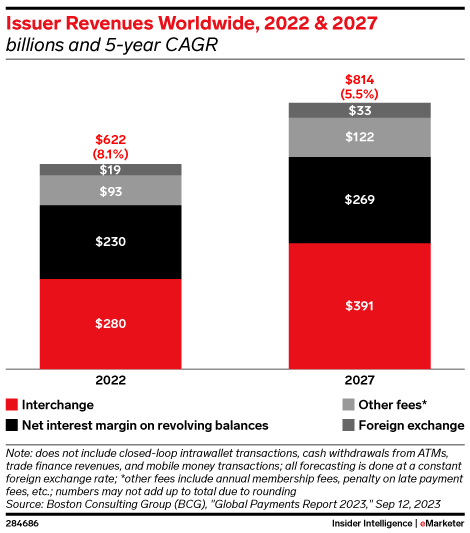 David’s take: Merchants may have a point. We estimated that consumer credit cards alone generated $70 billion in interchange in 2022. Saving $6 billion ($30 billion over five years) in consumer and commercial interchange hardly puts a dent in that.