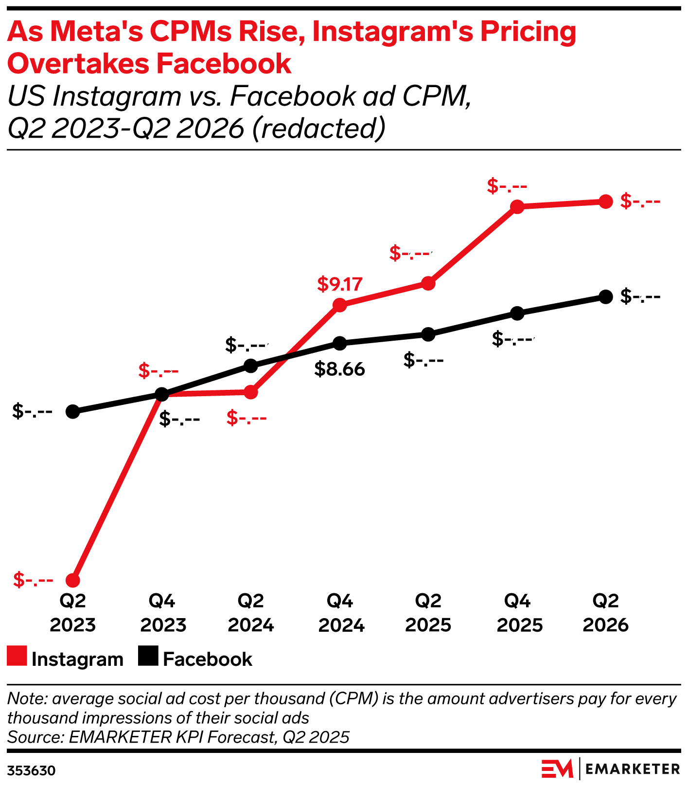 Key Stat: Instagram’s average CPM hit $9.46 in Q2 2025, per our forecast, and will remain higher than Facebook’s for the foreseeable future in the latest sign that Instagram has become Meta’s primary platform.