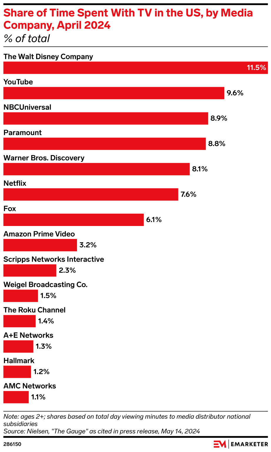 The news: YouTube accounted for 9.7% of all TV viewership in the US in May, the largest share ever for a streaming platform, per Nielsen’s "The Gauge" report.